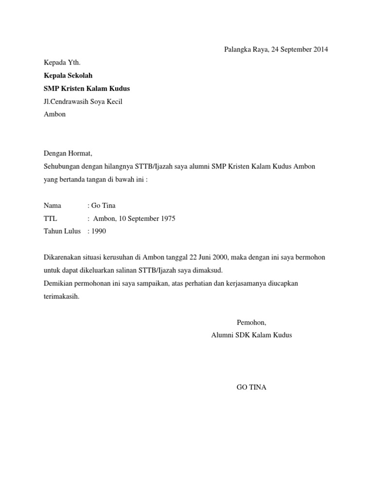 Namun kali ini kami akan membahas mengenai Surat Dinas yang dimana dalam hal. Demikian surat permohonan pindah sekolah ini saya buat dengan sebenar-benarnya kepada BapakIbu Kepala Badan Kepegawaian Daerah Sumatera Utara. Kad Pengenalan Pendaftaran Negara KPPN Bukti kehilangan pekerjaan contoh surat penamatan surat VSS MSS Maklumat akaun bank Penyata gaji untuk 6 bulan sebelum tarikh kehilangan pekerjaan.
